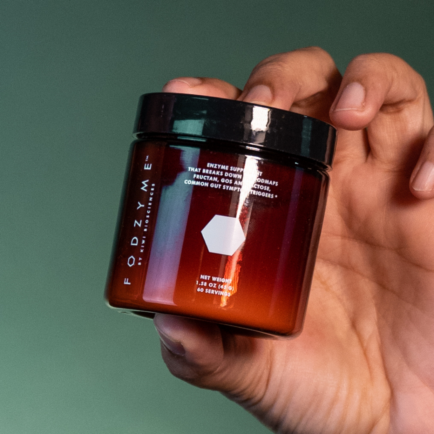 FODZYME® is a novel patent-pending enzyme supplement that breaks down the FODMAPs lactose, GOS, and fructan, which can trigger gut symptoms like abdominal pain, excessive gas, bloating, constipation, and diarrhea.